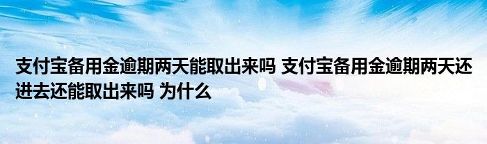 1、 支付宝的备用金逾期两天。还完之后能不能取出来要看实际情况,主要看金额有没有恢复。如果返还金额恢复,可以申请立即取出款项。还清后,系统收回额度。在这种情况下,用户不能使用备用金,需要等待系统重新开放额度。