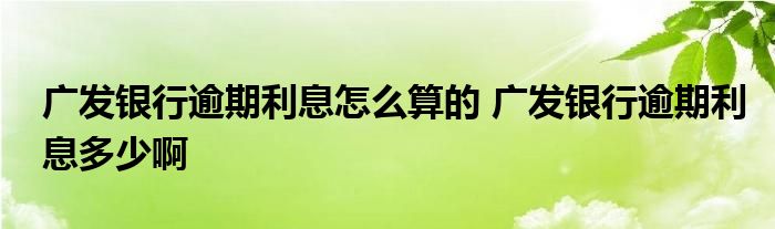 大家好,小呗来为大家解答以上的问题广发银行逾期利息怎么算的,广发银行逾期利息多少啊这个很多人还不知道,现在让我们一起来了解下吧!