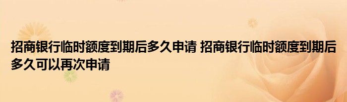 1、 招商银行临时额度到期后,只要持卡人还清欠款,就可以重新申请临时额度。