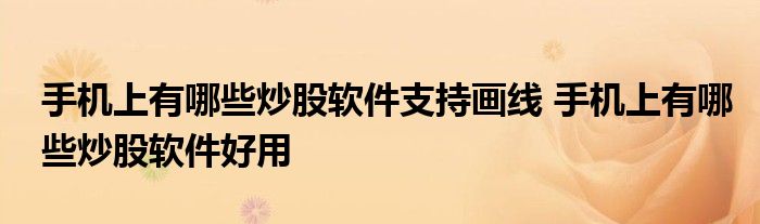 导读 大家好,小元来为大家解答问题。手机上有哪些炒股软件支持画线,手机上有哪些炒股软件好用,这个很多人还不知道,现在让我们一起来了解下吧