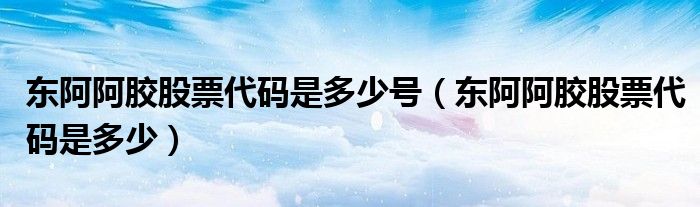 大家好,综合小编来为大家讲解下。东阿阿胶股票代码是多少号,东阿阿胶股票代码是多少这个很多人还不知道,现在让我们一起来看看吧!