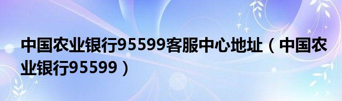 导读 大家好,小卡来为大家解答以上问题。中国农业银行95599客服中心地址,中国农业银行95599很多人还不知道,现在让我们一起来看看吧!1、