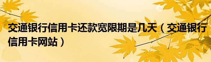 大家好,小卡来为大家解答以上问题。交通银行信用卡还款宽限期是几天,交通银行信用卡网站很多人还不知道,现在让我们一起来看看吧!