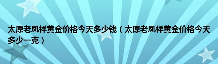 导读 大家好,综合小编来为大家讲解下。太原老凤祥黄金价格今天多少钱,太原老凤祥黄金价格今天多少一克这个很多人还不知道,现在让我们一起来看看