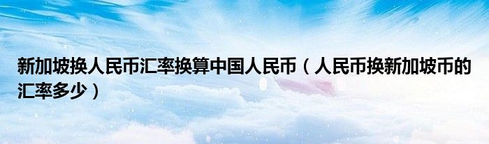 导读 大家好,综合小编来为大家讲解下。新加坡换人民币汇率换算中国人民币,人民币换新加坡币的汇率多少这个很多人还不知道,现在让我们一起来看看