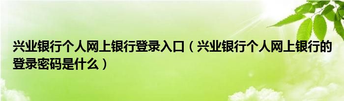 导读 大家好,综合小编来为大家讲解下。兴业银行个人网上银行登录入口,兴业银行个人网上银行的登录密码是什么这个很多人还不知道,现在让我们一起