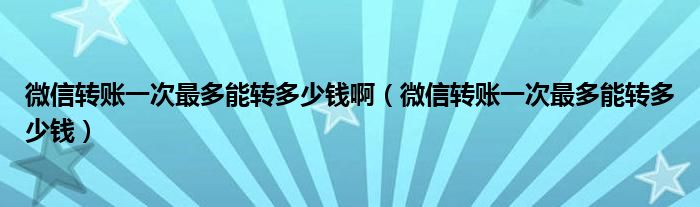 导读 大家好,综合小编来为大家讲解下。微信转账一次最多能转多少钱啊,微信转账一次最多能转多少钱这个很多人还不知道,现在让我们一起来看看吧!