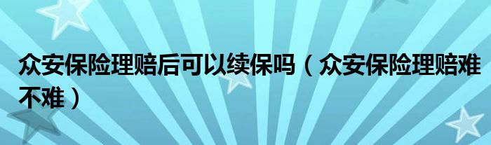 导读 大家好,综合小编来为大家讲解下。众安保险理赔后可以续保吗,众安保险理赔难不难这个很多人还不知道,现在让我们一起来看看吧!众安保险理赔