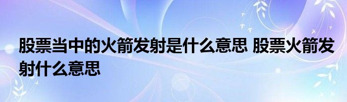 导读 大家好,小元来为大家解答问题。股票当中的火箭发射是什么意思,股票火箭发射什么意思,这个很多人还不知道,现在让我们一起来了解下吧!