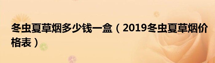 导读 大家好,综合小编来为大家讲解下。冬虫夏草烟多少钱一盒,2019冬虫夏草烟价格表这个很多人还不知道,现在让我们一起来看看吧!1、随着抽烟的