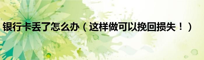 大家好,综合小编来为大家讲解下。银行卡丢了怎么办,这样做可以挽回损失!这个很多人还不知道,现在让我们一起来看看吧!