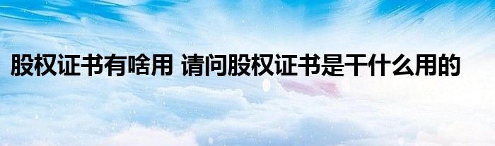 导读 大家好,小元来为大家解答问题。股权证书有啥用,请问股权证书是干什么用的这个很多人还不知道,现在让我们一起来了解下吧!