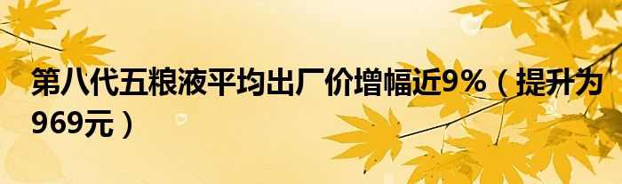 大家好,综合小编来为大家讲解下。第八代五粮液平均出厂价增幅近9%,提升为969元这个很多人还不知道,现在让我们一起来看看吧!