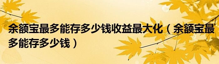 大家好,综合小编来为大家讲解下。余额宝最多能存多少钱收益最大化,余额宝最多能存多少钱这个很多人还不知道,现在让我们一起来看看吧!