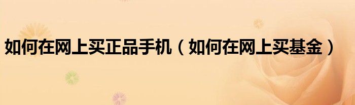 大家好,综合小编来为大家讲解下。如何在网上买正品手机,如何在网上买基金这个很多人还不知道,现在让我们一起来看看吧!