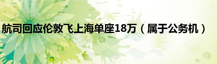 大家好,综合小编来为大家讲解下。航司回应伦敦飞上海单座18万,属于公务机这个很多人还不知道,现在让我们一起来看看吧!