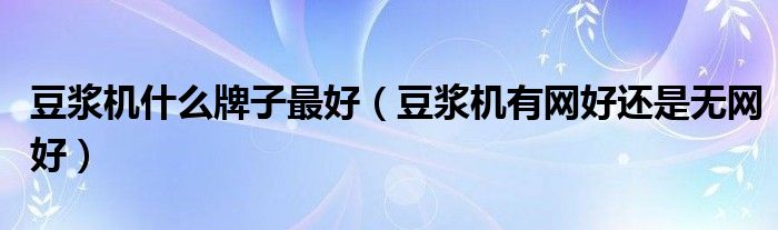 大家好,综合小编来为大家讲解下。豆浆机什么牌子最好,豆浆机有网好还是无网好这个很多人还不知道,现在让我们一起来看看吧!