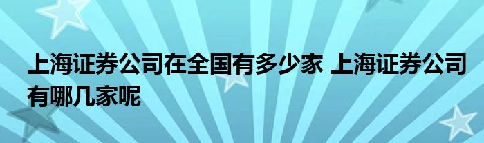 导读 大家好,小元来为大家解答问题。上海证券公司在全国有多少家,上海证券公司有哪几家呢,这个很多人还不知道,现在让我们一起来了解下吧!