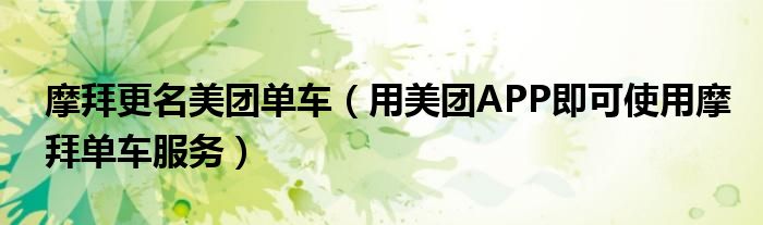 大家好,综合小编来为大家讲解下。摩拜更名美团单车,用美团APP即可使用摩拜单车服务这个很多人还不知道,现在让我们一起来看看吧!