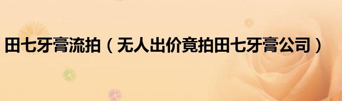 大家好,综合小编来为大家讲解下。田七牙膏流拍,无人出价竟拍田七牙膏公司这个很多人还不知道,现在让我们一起来看看吧!