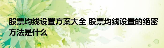 导读 大家好,小元来为大家解答问题。股票均线设置方案大全,股票均线设置的绝密方法是什么,这个很多人还不知道,现在让我们一起来了解下吧!