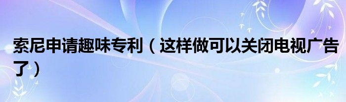导读 大家好,综合小编来为大家讲解下。索尼申请趣味专利,这样做可以关闭电视广告了这个很多人还不知道,现在让我们一起来看看吧!1、其实一直以