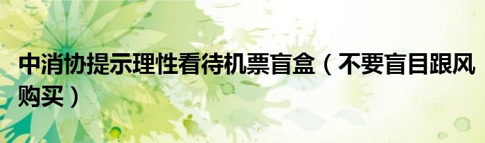 导读 大家好,综合小编来为大家讲解下。中消协提示理性看待机票盲盒,不要盲目跟风购买这个很多人还不知道,现在让我们一起来看看吧!1、在近段时