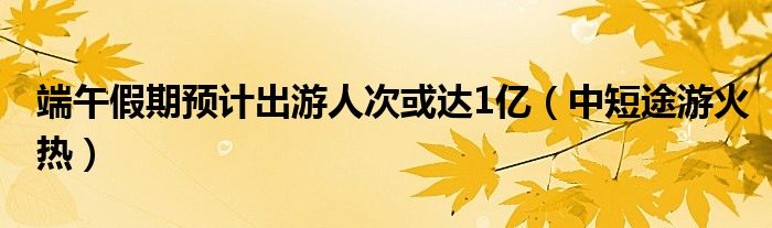 大家好,综合小编来为大家讲解下。端午假期预计出游人次或达1亿,中短途游火热这个很多人还不知道,现在让我们一起来看看吧!