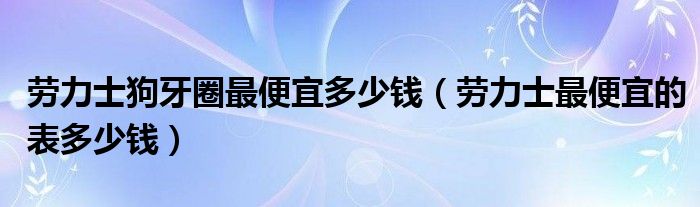导读 大家好,综合小编来为大家讲解下。劳力士狗牙圈最便宜多少钱,劳力士最便宜的表多少钱这个很多人还不知道,现在让我们一起来看看吧!1、劳力