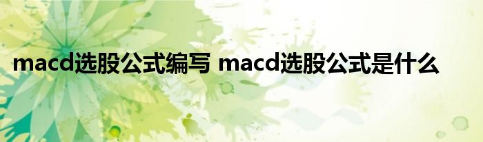 导读 大家好,小元来为大家解答问题。macd选股公式编写,macd选股公式是什么,这个很多人还不知道,现在让我们一起来了解下吧!