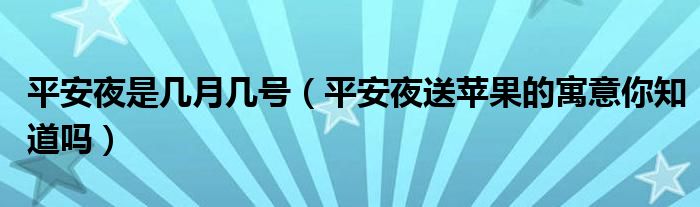大家好,综合小编来为大家讲解下。平安夜是几月几号,平安夜送苹果的寓意你知道吗这个很多人还不知道,现在让我们一起来看看吧!