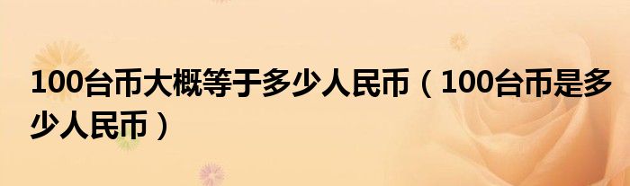 大家好,综合小编来为大家讲解下。100台币大概等于多少人民币,100台币是多少人民币这个很多人还不知道,现在让我们一起来看看吧!