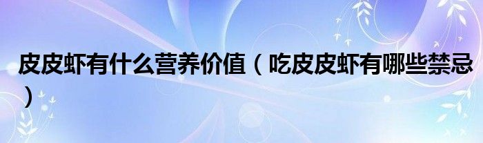 5、通过以上的介绍,相信大家对皮皮虾有什么营养价值都有所了解了。虽然皮皮虾的营养价值很高,味道很鲜美,但是吃皮皮虾也是需要讲究方法的,要适当吃才能对健康有好处,那么吃皮皮虾有哪些禁忌呢?