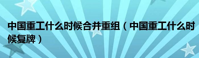 大家好,综合小编来为大家讲解下。中国重工什么时候合并重组,中国重工什么时候复牌这个很多人还不知道,现在让我们一起来看看吧!