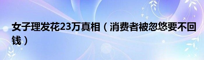 大家好,综合小编来为大家讲解下。女子理发花23万真相,消费者被忽悠要不回钱这个很多人还不知道,现在让我们一起来看看吧!