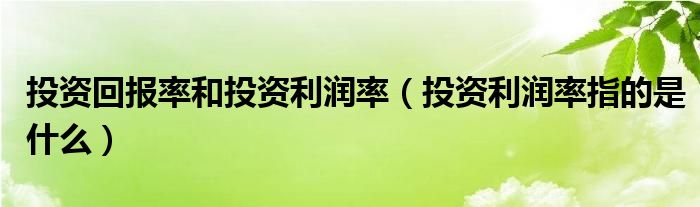 大家好,综合小编来为大家讲解下。投资回报率和投资利润率,投资利润率指的是什么这个很多人还不知道,现在让我们一起来看看吧!