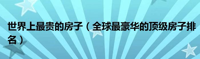大家好,综合小编来为大家讲解下。世界上最贵的房子,全球最豪华的顶级房子排名这个很多人还不知道,现在让我们一起来看看吧!