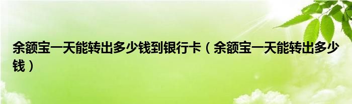 导读 大家好,综合小编来为大家讲解下。余额宝一天能转出多少钱到银行卡,余额宝一天能转出多少钱这个很多人还不知道,现在让我们一起来看看吧!1