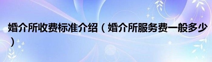 大家好,综合小编来为大家讲解下。婚介所收费标准介绍,婚介所服务费一般多少这个很多人还不知道,现在让我们一起来看看吧!