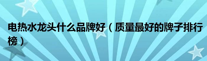 大家好,综合小编来为大家讲解下。电热水龙头什么品牌好,质量最好的牌子排行榜这个很多人还不知道,现在让我们一起来看看吧!