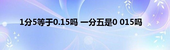 大家好,小呗来为大家解答以上的问题1分5等于0.15吗,一分五是0,015吗这个很多人还不知道,现在让我们一起来了解下吧!