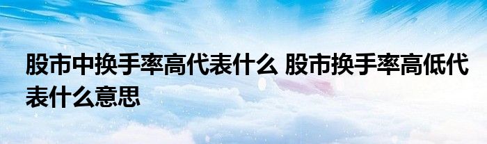 导读 大家好,小元来为大家解答问题。股市中换手率高代表什么,股市换手率高低代表什么意思,这个很多人还不知道,现在让我们一起来了解下吧!