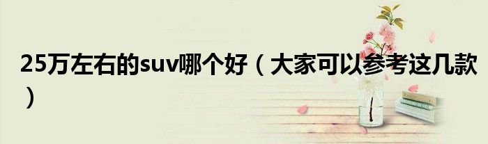 现在人们的生活水平越来越高了,好多家庭都会考虑入手购买一款汽车,毕竟买了汽车之后自己喜欢去哪里都是非常方便。其中,有不少人预算25万左右购买汽车,那么,你知道25万左右的suv哪个好呢?今天就让小编为大家介绍一下。