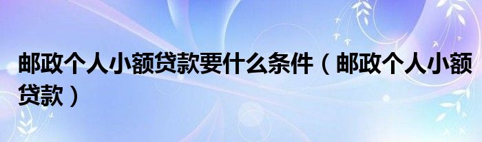 大家好,小卡来为大家解答以上问题。邮政个人小额贷款要什么条件,邮政个人小额贷款很多人还不知道,现在让我们一起来看看吧!
