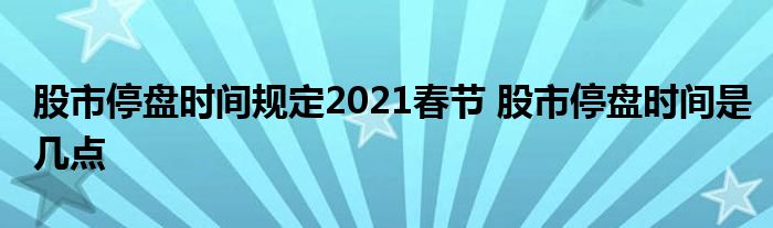 导读 大家好,小元来为大家解答问题。股市停盘时间规定2021春节,股市停盘时间是几点,这个很多人还不知道,现在让我们一起来了解下吧!