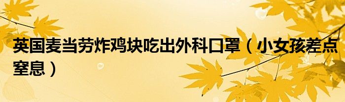 大家好,综合小编来为大家讲解下。英国麦当劳炸鸡块吃出外科口罩,小女孩差点窒息这个很多人还不知道,现在让我们一起来看看吧!