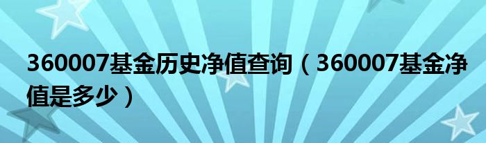 大家好,综合小编来为大家讲解下。360007基金历史净值查询,360007基金净值是多少这个很多人还不知道,现在让我们一起来看看吧!
