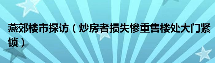 大家好,综合小编来为大家讲解下。燕郊楼市探访,炒房者损失惨重售楼处大门紧锁这个很多人还不知道,现在让我们一起来看看吧!
