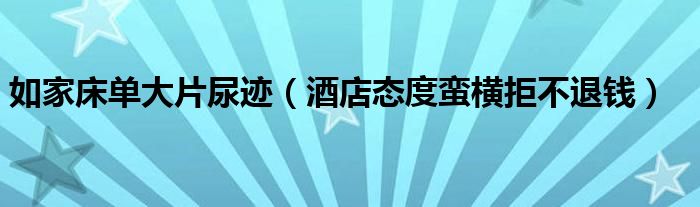 大家好,综合小编来为大家讲解下。如家床单大片尿迹,酒店态度蛮横拒不退钱这个很多人还不知道,现在让我们一起来看看吧!