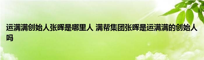 导读 大家好,小元来为大家解答问题。运满满创始人张晖是哪里人,满帮集团张晖是运满满的创始人吗,这个很多人还不知道,现在让我们一起来了解下
